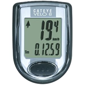 The new Velo 8 computer is CatEye's entry-level 8 functions computer. The bracket requires no tools and is simple to use. Like the Velo 5, It features a new, larger screen and a large button for easy operation.